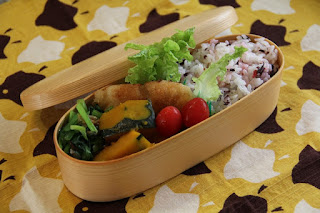 | ほうれん草お浸し・南瓜煮物・白身魚フライ・梅香ご飯 |